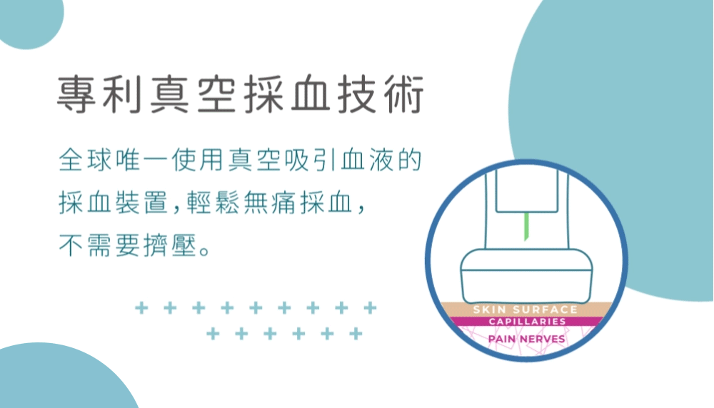 其真空吸血的特性可在穿刺時以較淺的深度程度達到更好的採血效果,